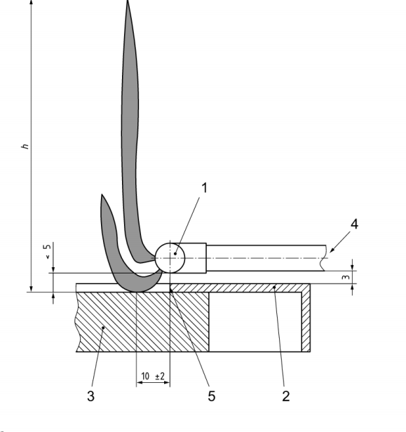 6、设有喷嘴轴向对称的点火源。点火源火焰蓝色内锥长度为13±2㎜,并可调节;点火源可使用丙烷或丁烷作为燃料。