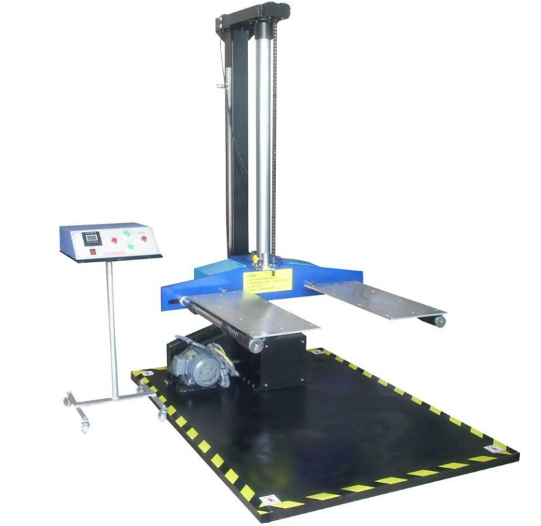 奶瓶整体跌落测试仪常温常压下,在试样中注入标称容量的室温水,按产品使用说明要求正确组装试样,用(1.75± 0.25)N·m 的力矩安装试样的锁紧环,在距离试验台撞击面上方(120±5)cm 的高处,以随机方向自由落体、跌落在撞击面上。